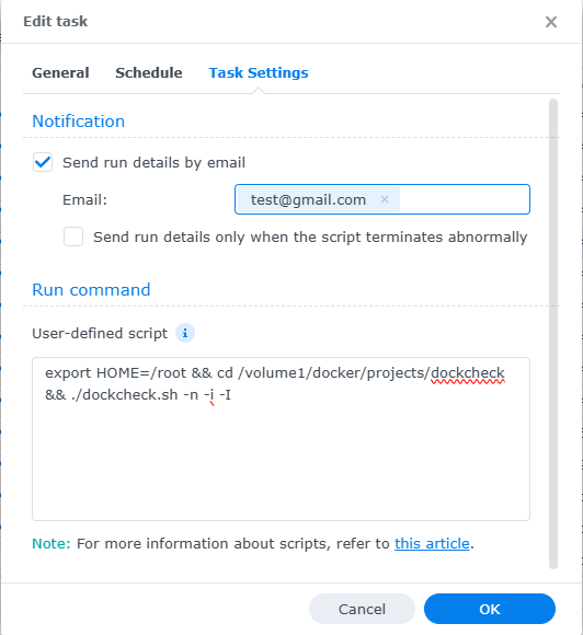 Automate Dockcheck with DSM Task Scheduler: